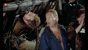 | Regia: Helmut Käutner Scenariu: Georg Hurdalek, Carl Zuckmayer Distribuţia: Curd Jürgens, Maria Schell, Christian Wolff, Fritz Tillmann, Siegfried Lowitz, Til Kiwe, Bobby Todd IMDB: Cinemagia: Trailer: Sinopsis: Filmul istoric german "Schinderhannes" (1958), bazat pe piesa de teatru cu același nume scrisă de Carl Zuckmayer în anul 1927, spune povestea legendarului tâlhar Johannes Bückler, cunoscut sub numele de "Schinderhannes", conducătorul unei bande de tâlhari care se revoltă împotriva forțelor de ocupație franceze și a ordinii impuse de autorităţi în timpul ocupației napoleoniene din jurul anului 1800, acţionând în zona muntoasă Hunsrück din Renania (o fostă provincie a Prusiei din vestul Germaniei). El este adesea portretizat ca un fel de Robin Hood din Hunsrück, furând de la bogați, dar lupta sa este determinată și de motive personale, fiind în conflict permanent cu sistemul judiciar francez. Povestea lui de dragoste cu Julchen Bläsius (interpretată de Maria Schell), care îi susține activitățile criminale, duce în cele din urmă la... (d'Artagnan) Screens: Video Information: Nume fişier: Der Schinderhannes 1958.1080p.3SATHD.h264.TeoB.RoHC.mp4 Mărimea fişierului: 4,25 GB Lungime: 01:53:22 Bitrate general: 5.376 kb/s Video: AVC, 1788x1074 (5:3), 25.000 fps, 5.207 kb/s, (Main@L4) (CABAC / 4 Ref Frames) Audio: AAC LC, 44.1 KHz, 2 ch (L R), 160 kb/s, 43,066pfs (1024 SPF) (German) Subtitre: Romanian (hardcoded) Traducerea, adaptarea şi sincronizarea manuală: Cristian '82. Mulţumim! Filmul ne-a fost pus la dispoziţie de către: cristofeer007. Mulţumim! Filmul a fost transcodat şi optimizat ca imagine şi sunet de către: TeoB. Mulţumim frumos! Download | |